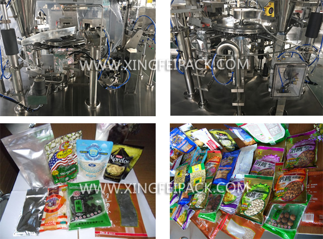 本機(jī)適用于平面袋,自立袋,拉鏈袋等各種形狀的熱封的復(fù)合袋, 與各種計(jì)量機(jī)配套,可進(jìn)行顆粒,粉劑,液體等物料的包裝。