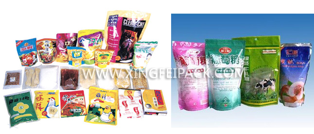 旋轉(zhuǎn)式給袋式自動(dòng)包裝機(jī)適用于平面袋,自立袋,拉鏈袋等各種形狀的熱封的復(fù)合袋.