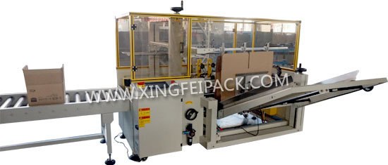 本機(jī)將疊成紙板的箱子自動(dòng)打開,箱子底部按一定程序折合,并用膠帶密封,可單獨(dú)使用,也可與裝箱機(jī)連線使用。廣泛應(yīng)用于食品,化工,日用品等行業(yè)。